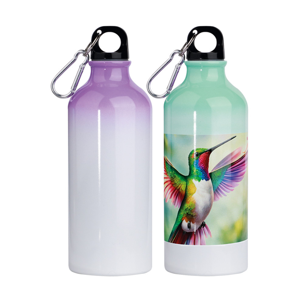 ΚΩΔ. 2151 Μπουκάλι Αλουμινίου ντεγκραντέ μεγάλο Subli με γάντζο μεταλλικό χωρητικότητας 600 ml. Μονό τοίχωμα Εκτύπωση sublimation και χάραξη Δ.Α.6.9φ x 26εκ. Χ.Ε 18,5X8εκ (sublimation) 3X4,5εκ (χάραξη). Θερμοκρασία και χρόνος τυπώματος: 200 βαθμοί C – 195 δευτερόλεπτα. Οι θερμοκρασίες καθώς και οι χρόνοι θερμομεταφοράς είναι ενδεικτικοί και μπορεί να διαφέρουν από μηχάνημα σε μηχάνημα.