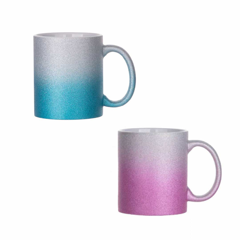 11oz/330ml Gradient Bottom Glitter Mug with sublimation coating Material: High-quality stoneware Size: φ8.2*H9.5cm Printing area 18.5X8 cm